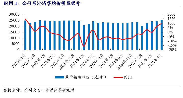 2025年4月,公司实现签约销售面积59.59万方,同比下降24.8%;实现签约销售金额173.12亿元,同比下降9.0%,环比增长17.3%,单月销售数据依旧承压。2025年1-5月,公司实现签约销售面积265.53万方,同比下降21.2%;实现签约销售金额671.46亿元,同比下降13.7%,全口径销售排名行业第四;签约销售均价25288元/平,同比增长9.4%。